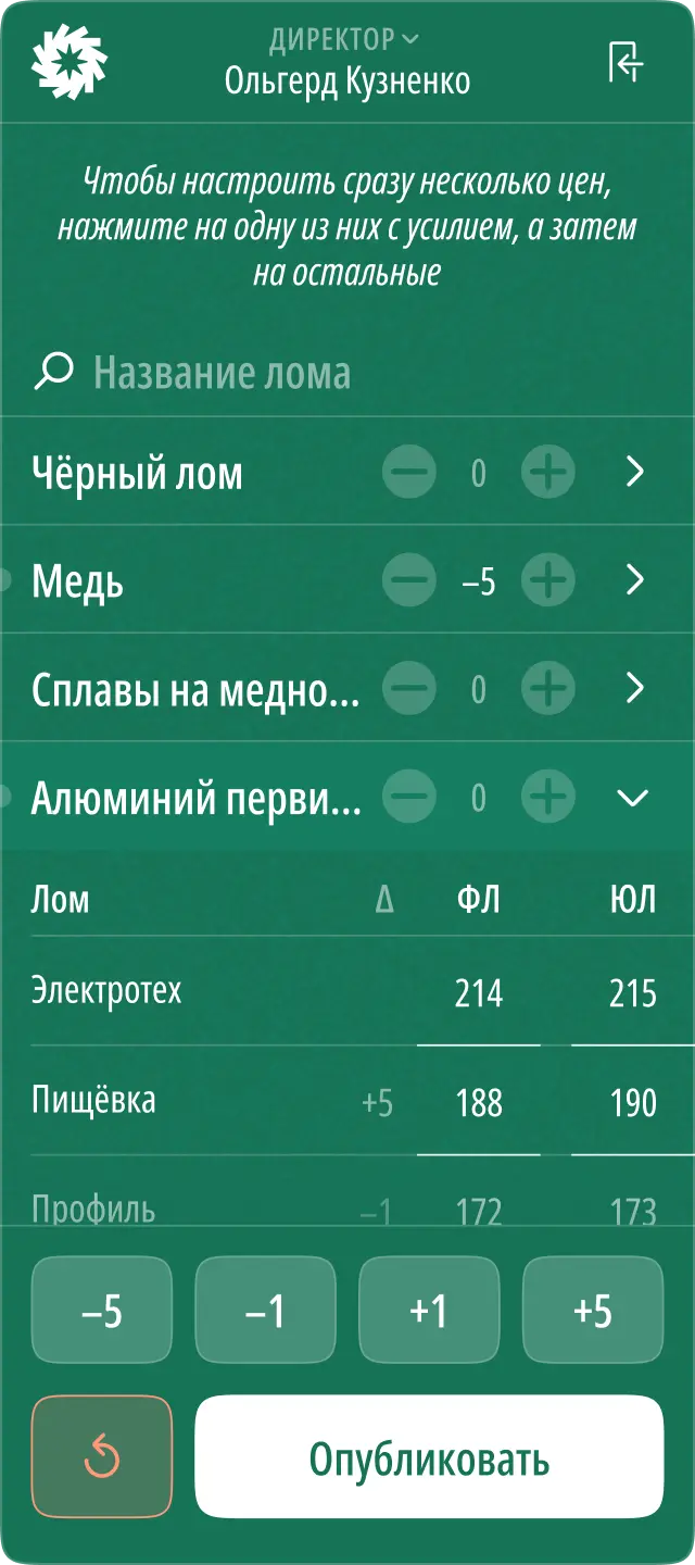 Быструю приёмку лома в мобильном приложении