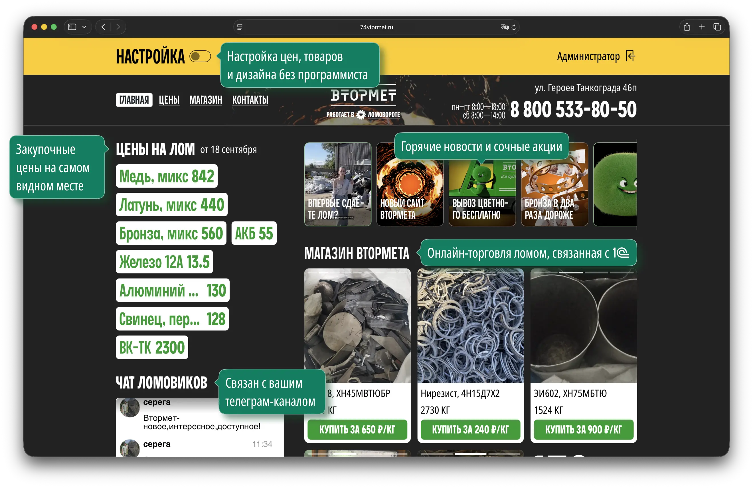 Ваш сайт для торговли ломом. Настраивайте цены и ставьте лом на продажу сами, без программиста.